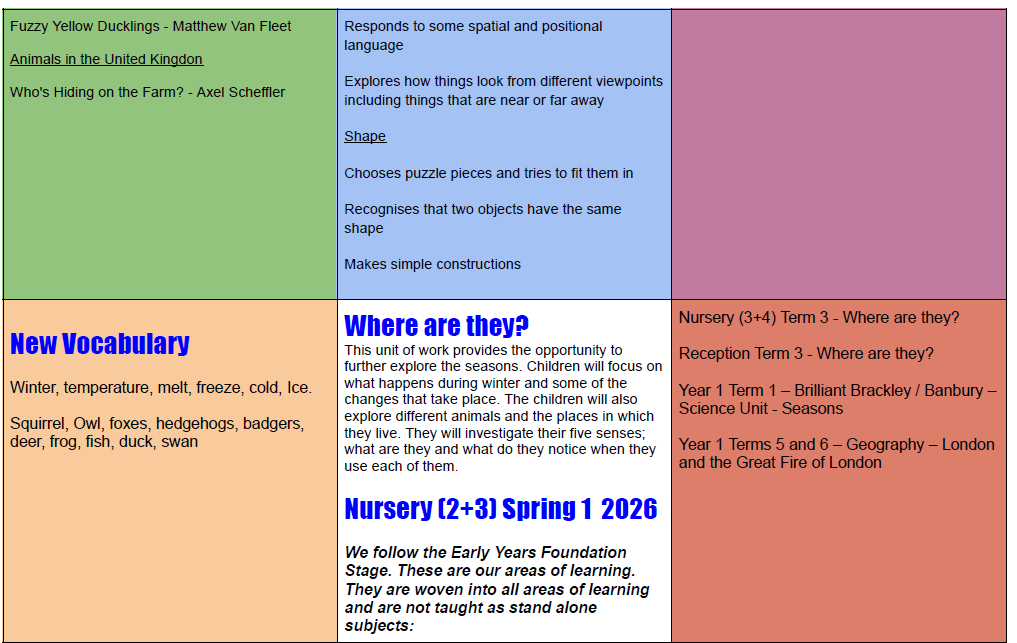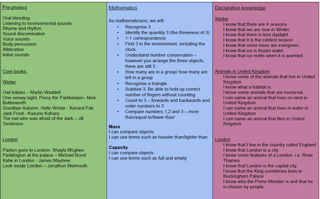 3 and 4 Year Olds Curriculum Map- Spring 1