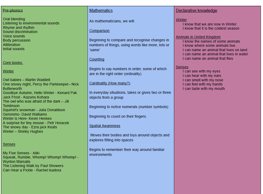 2 and 3 Year Olds Curriculum Map- Spring 1